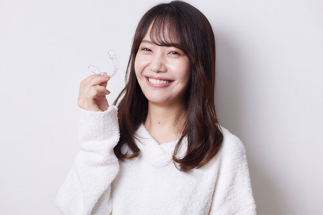 ご自身で簡単に取り外しができるため、装置を気にせずお好きな食事を楽しめます。歯磨きやフロスも普段通りしっかり行えるので、お口の中を常に清潔・衛生的に保てます。