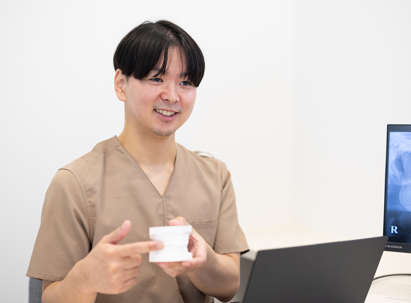 歯並びのお悩みや治療へのご希望を丁寧にお伺いします。矯正担当医がお口の中を拝見し、マウスピース矯正が適しているかどうかの判断や、治療期間・費用の目安について分かりやすくご説明いたします。